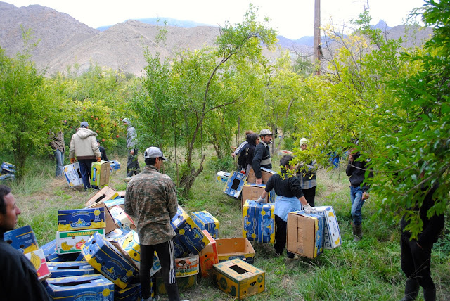 It is high season in Nrnadzor. The houses are full of temporary workers from all over Armenia who are hired for the harvest. We meet them in Alik's orchard and they are no doubt in a great mood...