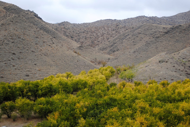 After having got a bit lost, we finally arrive in Nrnadzor. The village is surrounded with pomegranate orchards, in two valleys. The good news is that the orchards are still expanding. In this second half of October, it is harvest time and the village is full of temporary workers.