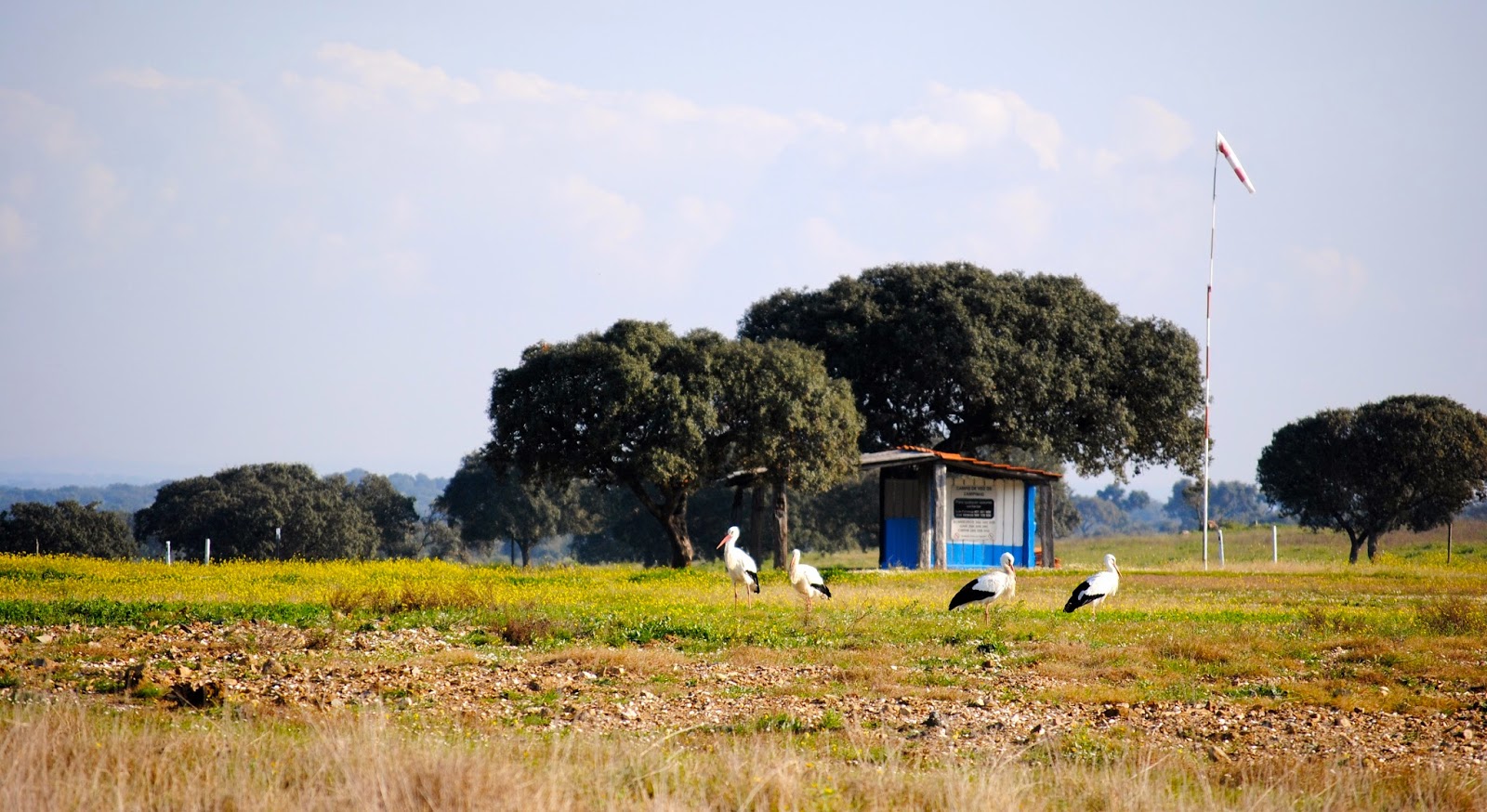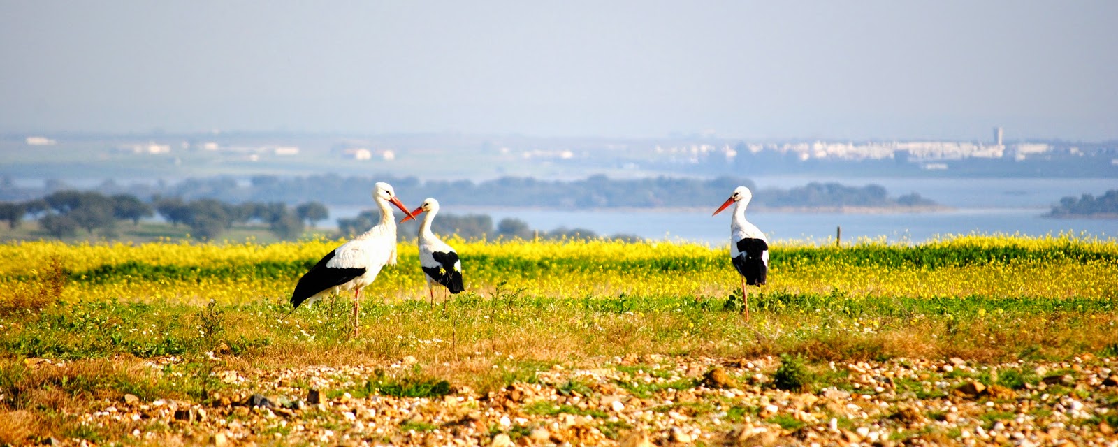 Vers la mi-décembre, c'est le retour des cigognes. L'une d'entre elles passe ses nuits sur le nid du Monte, puis s'envole après le lever des brumes. Et puis deux... Ca a l'air bien parti pour une deuxième saison de nidification. Pendant ce temps, les cigognes des Montes environnants craquètent déjà. Et l'aérodrome de Campinho accueille lui aussi quelques élégants aéronefs avides d'envolées ... (avec en arrière-fond, le village de Luz-la-Neuve, de l'autre côté du grand lac)